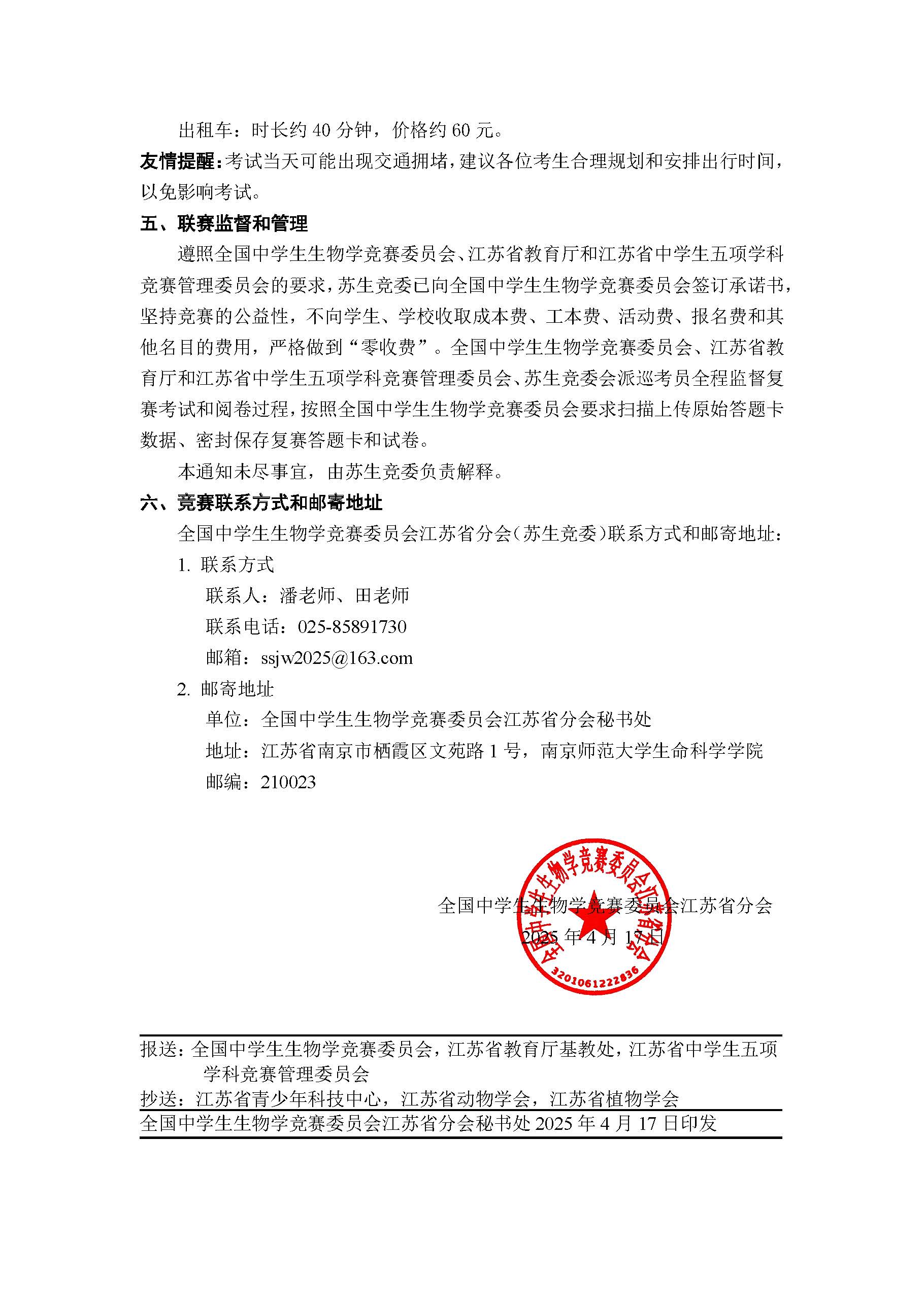 关于2025年江苏省赛区全国中学生生物学联赛暨江苏省中学生生物学竞赛(复赛)的通知