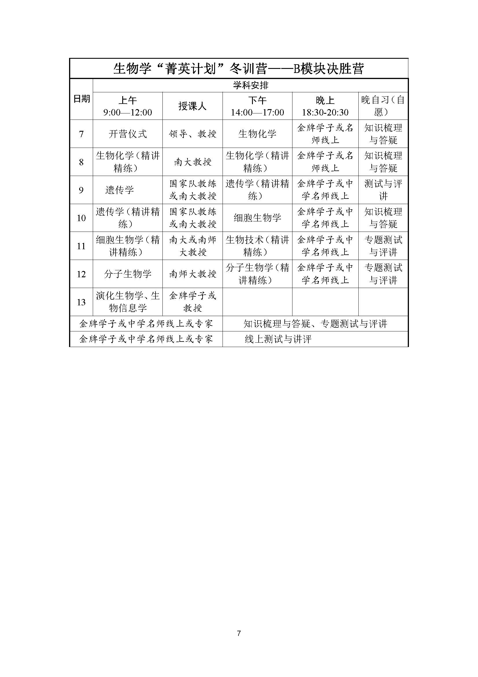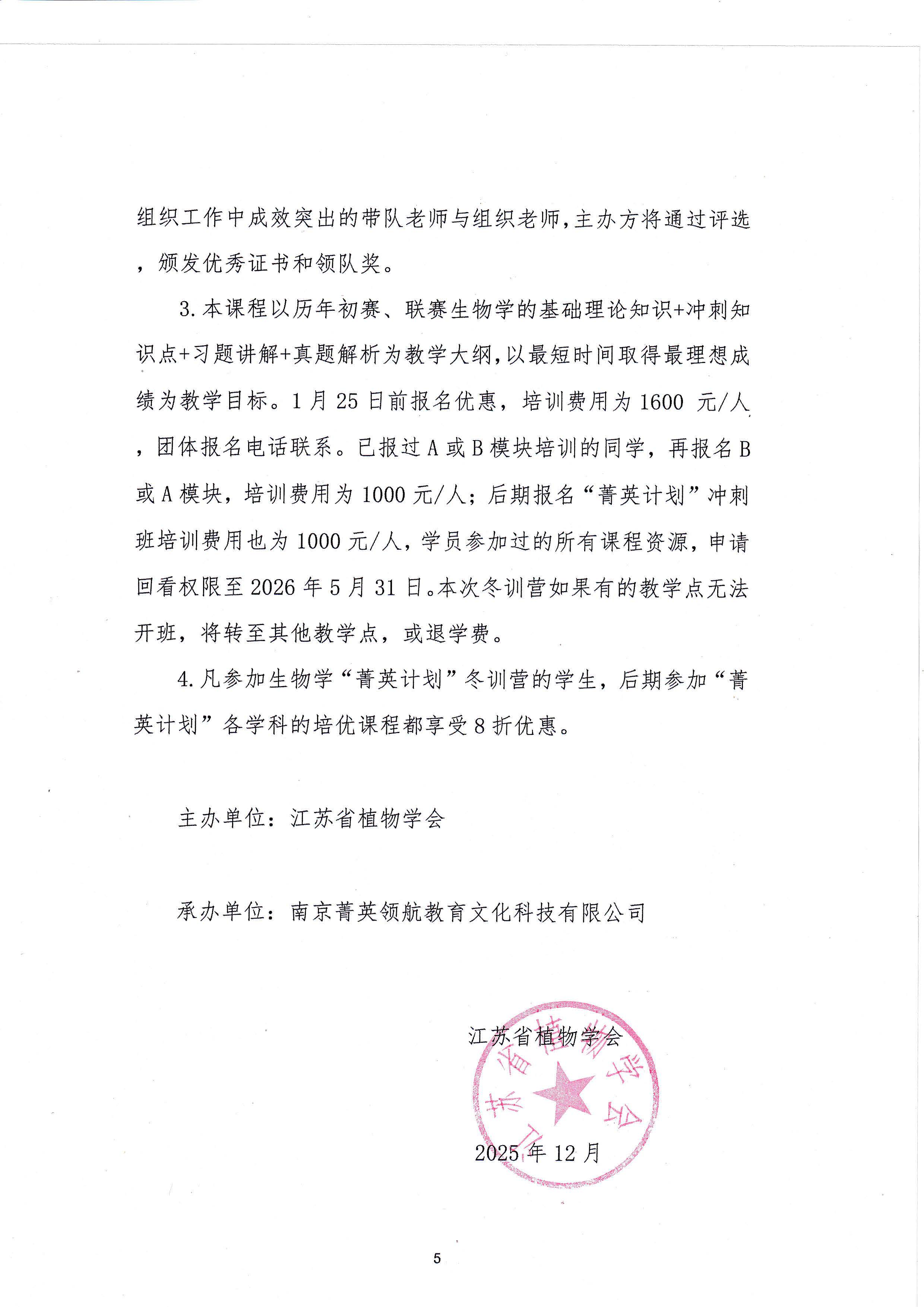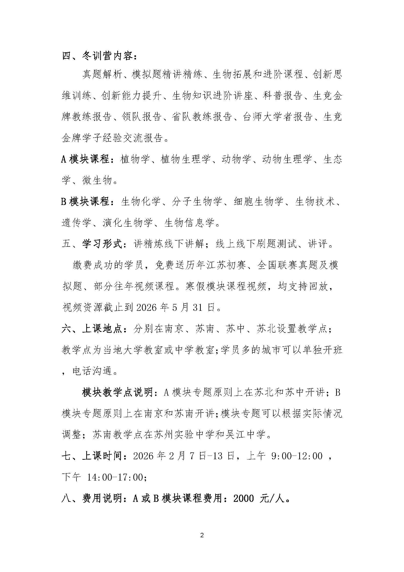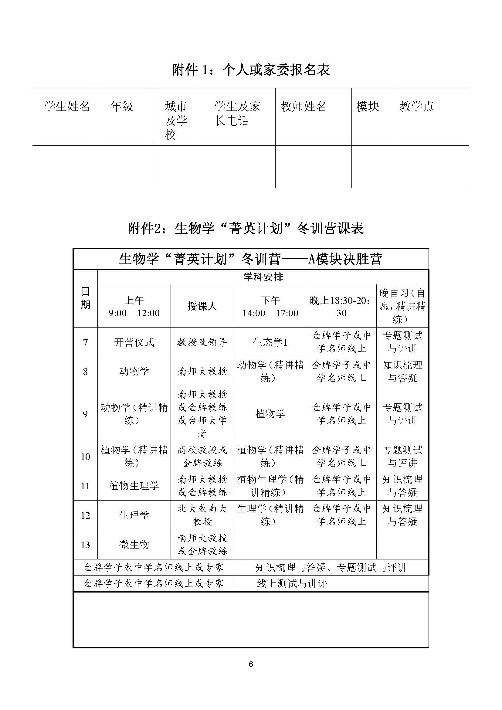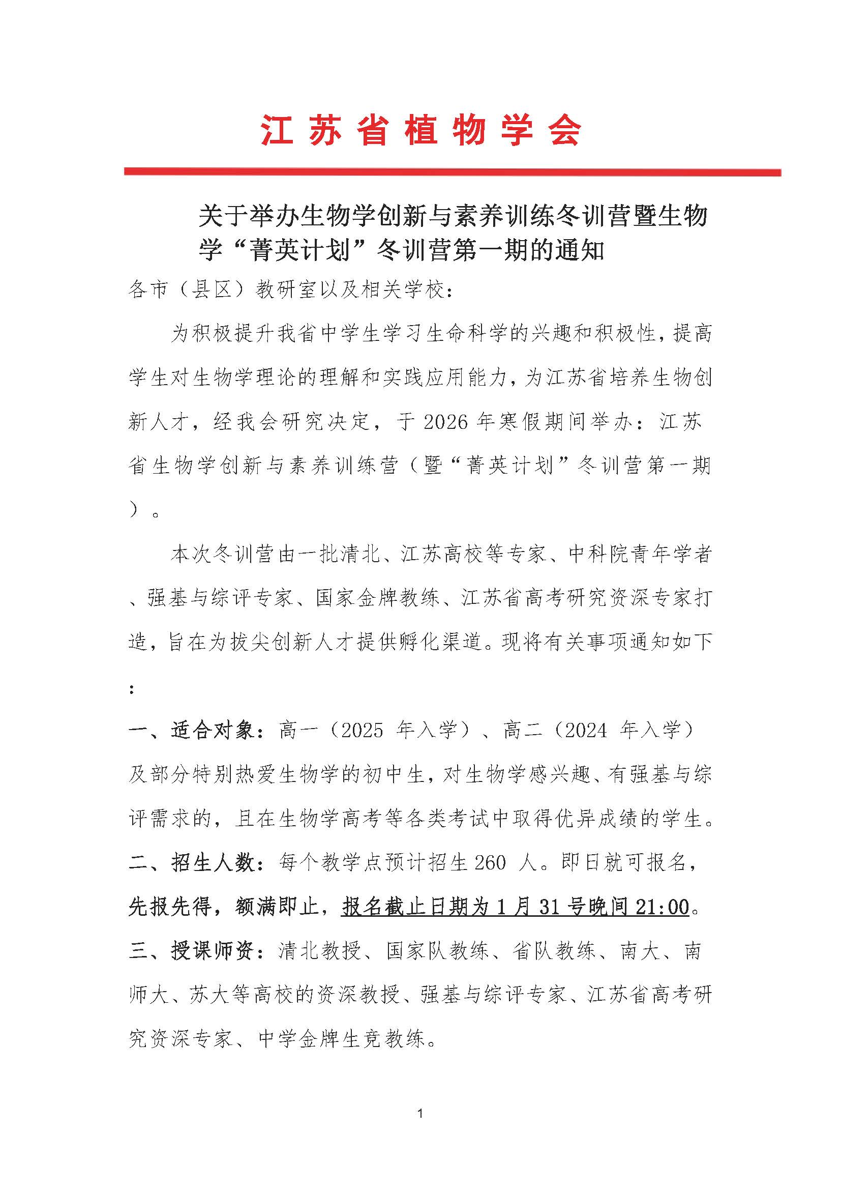 关于举办生物学创新与素养训练冬训营暨生物学“菁英计划”冬训营第一期的通知