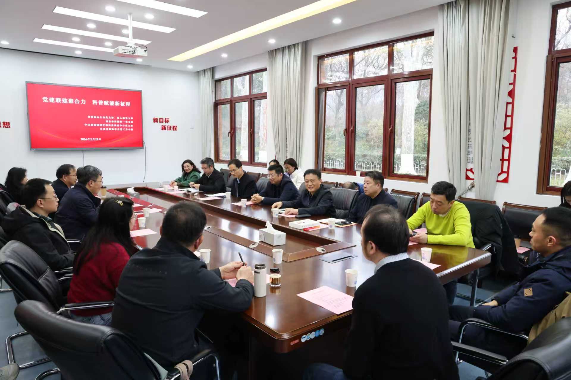 为深入学习贯彻党的二十届四中全会精神,推动党建与业务深度融合,2月28日下午,江苏省植物学会党的工作小组参加江苏省科协办公室党支部联合省科协组织人事部党支部、南京市科协第一党支部、南京中山植物园科普与园艺中心支部,在南京中山植物园开展“党建联建聚合力 科普赋能促发展”主题党日的活动。江苏省植物学会党的工作小组成员,江苏省植物学会副理事长汪仁、省科协秘书长范银宏参加活动。